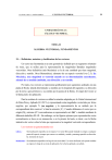 J.A DÁVILA BAZ - J. PAJÓN PERMUY CÁLCULO VECTORIAL UNIDAD DIDÁCTICA I: CÁLCULO VECTORIAL. TEMA II ÁLGEBRA VECTORIAL; FUNDAMENTOS 2.1.- Definicion, notacion y clasificacion de los vectores. Un vector (en Geometria) es un ente geométrico definido por un segmento orientado de recta, que se utiliza para la representación de magnitudes llamadas magnitudes vectoriales. Otra definición (más Mecánica) es la de una cantidad que tiene magnitud, dirección y sentido. Otra (Matemática); elemento de un espacio vectorial (ver 2.3). En Mecánica, una magnitud es vectorial cuando en su determinación necesitamos, además de su medida (módulo), una dirección y un sentido. Por tanto, los vectores se representan gráficamente por segmentos acabados en una punta de flecha. Queda determinado su módulo por la longitud del segmento; su dirección por la recta a que pertenece; y su sentido por la punta de la flecha. Al origen del vector se le llama punto de aplicación. Para la escritura de vectores se utiliza la notación adoptada por la Unión Internacional de Física Pura y Aplicada (U.I.F.P.A.), representando estas magnitudes vectoriales por letras negritas, por ejemplo; V (en negrita); y la representación de su módulo por la correspondiente letra cursiva V o bien la notación V. Cuando definamos el vector por su origén (O) y extremo (O¨) convendremos en representarlo así: OO¨ o también mediante la diferencia simbólica O´- O . Sin embargo, en las figuras optamos por representarlos como normalmente se hace en un manuscrito o en la pizarra del aula, es decir, con la flecha indicativa de vector sobre la letra que representa a la magnitud vectorial correspondiente. Los vectores en general pueden ser: Libres.- Sin localización especifica en el espacio. Un vector libre puede trasladar su origen a cualquier punto del espacio, siempre que conserve su módulo y sentido y mantenga paralela su dirección. Ej. momento de un par. Deslizantes.- Sin localización especifica a lo largo de una recta dada. Un vector deslizante solo puede trasladar su origen a lo largo de su recta de aplicación. Ej. la fuerza aplicada a un sólido. 29 30 Fijos.- MECÁNICA GENERAL UNIVERSIDAD DE HUELVA - E.P.S. DE LA RÁBIDA Un vector fijo es el de origen fijo. Ej. la intensidad del campo gravitatorio en un punto dado. Comparativamente pueden ser: Vectores equipolentes.- Vectores iguales.- Son los que tienen igual módulo, la misma dirección o direcciones paralelas y el mismo sentido. La equipolencia es una relación de equivalencia, que establece una partición del conjunto de los vectores en clases de equivalencia. Son los que tienen la misma magnitud, dirección y sentido. Vectores equivalentes.- Son los que producen el mismo efecto. Atendiendo a lo que representan pueden ser: Vectores polares.- Son los que representan magnitudes físicas relacionadas con una traslación, como la velocidad lineal por ejemplo. Vectores axiales.- Son los que representa magnitudes físicas ligadas a una rotación, como el vector velocidad angular. Fijado un sistema de referencia, se denominan componentes de un vector V los valores de las proyecciones del vector sobre los ejes del sistema de referencia, por ejemplo; Vx,Vy,Vz. J.A DÁVILA BAZ - J. PAJÓN PERMUY CÁLCULO VECTORIAL 2.2.- Espacio vectorial. Recordemos algunas nociones estudiadas en álgebra. Se llama n-tuple de números reales al conjunto ordenado de números reales. x = (x1, x2,..., xn) El conjunto de todas las n-tuples se representa por 8n y sus elementos reciben el nombre de vectores y también puntos. Dentro de este conjunto se define una ley de composición interna. ~x, y 8n x + y = (x1, x2,..., xn) + (y1, y2,..., yn) = (x1 + y1, x2 + y2., ..., xn + yn) y una ley de composición externa sobre el cuerpo 8 de los números reales. ~x 8n, ~ 8 · x = · (x1, x2,..., xn) = (· x1, · x2,..., · xn) El conjunto 8n dotado de estas dos operaciones tiene estructura de espacio vactorial, Las xi,(i = 1,2,...,n), se llaman coordenadas del vector. También sabemos que 8n es un espacio vectorial de n dimensiones, un vector x = (x1, x2,..., xn) en base canónica se expresa así: x = (x1, x2,..., xn) = x1 ( 1, 0, ..., 0 ) + x2 ( 0, 1, ..., 0 ) +,..., + x n ( 0, 0, ..., 1 ) x = x1 e1 + x2 e2 +,..., + xn en Para el estudio de cualquier fenómeno físico necesitamos un sistema de referencia, la forma más simple empleada, es el de coordenadas cartesianas ortogonales. Veamos como se establece este criterio. Inicialmente, podemos asociar un conjunto de puntos X con el conjunto de los números reales, lo que constituiria un sistema coordenado del espacio unidireccional formado por los puntos de X. Podemos enunciar que el par de números (x,y) que representen las coordenadas de un punto P en el plano, y la correspondencia biunívoca de parejas ordenadas de números con el conjunto de puntos del plano XY es el sistema coordenado ortogonal del espacio bidimensional constituido por los puntos del plano. Por tanto, la terna ordenada de números (x,y,z) que representan las coordenadas de un punto P en el espacio, y la correspondencia biunívoca de ternas ordenadas de números con el conjunto de puntos del espacio XYZ es el sistema coordenado ortogonal del espacio tridimensional constituido por los puntos del espacio. Convenimos llamar triedro trirrectangulo positivo o dextrogiro el representado en la figura. 31 32 MECÁNICA GENERAL UNIVERSIDAD DE HUELVA - E.P.S. DE LA RÁBIDA 2.3.- Operaciones fundamentales; suma y diferencia de vectores. Adición de vectores. Sumar o componer dos o más vectores es hallar otro vector resultante cuyas componentes sean iguales a la suma de las componentes de los vectores sumados. Gráficamente se pueden sumar vectores usando la ley del paralelogramo. y A a O c b Por el Teorema de los cosenos deducimos: C c2 = a2+b2 - 2·a·b·cos(180-) = a2+b2 + 2·a·b·cos 180- x D B O también sumando las componentes cartesianas, situando el eje x en b tendremos: ax = a·cos c