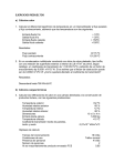 EJERCICIOS RESUELTOS a) Cálculos calor 1. Calcular el diferencial logarítmico de temperatura en un intercambiador a flujo paralelo y flujo contracorriente, sabiendo que las temperaturas son las siguientes: Entrada fluido frío Salida fluido frío Entrada fluido caliente Salida fluido caliente + 10ºC. + 35ºC. + 150ºC. +100ºC. Resultados: Flujo paralelo Flujo contracorriente 97,75 ºC 101,99 ºC 2. En un condensador multitubular construido con tubo de cobre aleteado, tipo truffin, con una relación de superficies exterior a interior de 3,6 m2/m2 se prevé, según catálogo, un coeficiente de transmisión de 1.100 W/m2xºC, partiendo de un factor de ensuciamiento de 0,0001 m2xºC/ W. Si es estima que el factor de obstrucción puede ser de 0,0002 m2xºC/ W ¿Como quedará afectado el coeficiente de transmisión? Resultados: Descenderá hasta 788 W/m2xºC b) Cálculos cargas térmicas 3. Calcular las infiltraciones de calor en una cámara destinada a la conservación de productos lácteos, con las siguientes prestaciones: Temperatura exterior Humedad relativa exterior Temperatura interior Humedad relativa interior Dimensiones Entrada diaria género Temperatura entrada Coeficiente transmisión medio de paredes, techo y suelo +32 ºC 60 % +2 ºC 80 % 10 x 5 x 4 m 5.000 kg +15 ºC 0,27x10-3 kW/m2xºC Hipótesis de cálculo: Tiempo de funcionamiento Condiciones de uso Presencia de personal Número de personas Al ser mayoritariamente producto envasado FCS 16 h/día Tráfico normal 4 h/día 2 0,95 Cálculos: Transmisión: Aplicación fórmula (83) St = 2x(10x5+(10+5)x4) = 220 m2 K = 0,27x 10-3 kW/m2x°C ∆t = (32-2) ºC H = 24 h/día Además, para obtener kJ/día, es necesario pasar los kW (Kj/s) que tenemos a kJ/h, por lo que debemos multiplicar el resultado por 3600: Qt = 2x(10x5+(10+5)x4)x0,27x10-3x(32-2)x24x3.600 = 153.965 kJ/d Infiltración: Se aplica la fórmula (84). Calcularemos primero la diferencia de entalpías, para lo que usaremos la ecuación (85) y la adjunta tabla I: Entalpía aire exterior: 1x32+2490x60/100x30,76/1000+1,92x60/100x30,76/1000x32 = 79,089 kJ/kg Entalpía aire exterior: 1x2+2490x80/100x4,382/1000+1,92x80/100x4,382/1000x2 = 10,742 kJ/kg Diferencia entalpías: 68,347 kJ/kg Se sustituye el valor hallado en la ecuación antes mencionada: Qi = (10x5x4)x50/(10x5x4)1/2x1,284x68,347 = 62.054 kJ/d Género: Se emplea la ecuación correspondiente al enfriamiento de género fresco, tomando el calor específico del género de la tabla 10 y multiplicándolo por 4,18 para transformar las Kcal/kgxºC a kJ/kgxºC. Qg = 5.000x(0,9x4,18)x(15-2) = 244.530 kJ/d Embalaje: Se tomará en este caso, a falta de mejores indicaciones, un porcentaje del 5% del calor de mercancía. QE = 0,05x244.530 = 12.227 kJ/d Calor de maduración: Es exclusivo de frutas y verduras Iluminación: Se usa la ecuación (92), debiéndose tener presente que de utilizar las unidades reflejadas en la misma hay que convertir los Watios a kW, por lo que deberemos dividir por 1.000: Qa = (0,025/1000)x3.600x(10x5) x500x4 = 9.000 kJ/d Se ha considerado una iluminación de 500 Lux Personal: Se utiliza la ecuación (93): Qp = 2x836x4 = 6.688 kJ/d Ventiladores: Como en este ejercicio se desconoce la potencia y número de ventiladores, se hará una estimación de la misma mediante aplicación de la ecuación (93), suponiendo una diferencia de temperatura en el aire a su paso a través de la batería de 3 ºC y dividiendo entre las horas de funcionamiento previstas del evaporador, al objeto de encontrar el caudal horario: ΣQ = 153.965+62.054+244.530+12.227+9.000+6.688 = 488.464 kJ/d G = 488.464x1,15x0,95/(1,254x3x16) = 8.866 m3/h Con ello, admitiendo una presión total de servicio en los ventiladores de 20 mm y un rendimiento del 50 %, podemos estimar la potencia absorbida por los mismos, en: Pm = 8.866x20/(75x(1+2/273)x3.600x0,5x1,36) ≈ 0,96 kW Y el calor cedido por los ventiladores valdrá por tanto. Qv = 0,96x3.600x16 = 55.224 kJ/d Suma total de cargas térmicas Potencia frigorífica necesaria = 543.687/(3.600x16) = 543.687 kJ/d 9,4 kW 4. Calcular las cargas térmicas que se producen en una cámara destinada a la conservación de carne de ternera congelada, con las siguientes premisas de funcionamiento: Temperatura exterior +32 ºC Humedad relativa exterior 60 % Temperatura interior -20 ºC Humedad relativa interior 90 % Dimensiones 20 x 15 x 6 m Entrada diaria género 20 % de su capacidad de almacenamiento Estiba 350 kg/m3 Temperatura entrada del género -15 ºC Coeficiente transmisión medio de paredes, techo y suelo 0,16x10-3 kW/m2xºC Hipótesis de cálculo: Tiempo de funcionamiento Condiciones de uso Presencia de personal Número de personas Al ser congelados se adopta FCS 18 h/día Tráfico intenso 10 h/día 2 0,95 Resultados del cálculo: Transmisión: Infiltración: Género: Iluminación: Personal: 733.225 kJ/d 580.186 kJ/d 1.106.028 kJ/d 135.000 kJ/d 16.720 kJ/d Ventiladores: Suma total de cargas térmicas Potencia frigorífica necesaria 299.332 kJ/d 2.870.491 kJ/d 44,3 kW 5. Calcular la potencia frigorífica necesaria para atender una cámara destinada a la conservación de manzanas, con las siguientes premisas de funcionamiento: Temperatura exterior +32 ºC Humedad relativa exterior 60 % Temperatura interior 0 ºC Humedad relativa interior 85 % Dimensiones 12 x 8 x 6 m Entrada diaria género 10 % de su capacidad de almacenamiento Estiba 250 kg/m3 Temperatura entrada del género +25 ºC Coeficiente transmisión medio de paredes, techo y suelo 0,27x10-3 kW/m2xºC Hipótesis de cálculo: Tiempo de funcionamiento Condiciones de uso Presencia de personal Número de personas Al ser producto sin embalar FCS 20 h/día Tráfico normal 3 h/día 1 0,85 Resultados del cálculo: Transmisión: Infiltración: Género: Embalaje: Maduración I: Maduración II: Iluminación: Personal: Ventiladores: Suma total de cargas térmicas Potencia frigorífica necesaria 298.598 kJ/d 110.279 kJ/d 1.309.176 kJ/d 65.459 kJ/d 108.346 kJ/