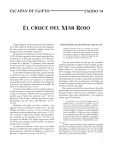 escapan de egipto ÉXODo 14 El cruce del Mar Rojo Hemos llegado al último episodio de la historia de la liberación de Israel de la esclavitud egipcia. En este pasaje, los israelitas estaban ahora disfrutando de la celebrada redención. El capítulo 14 comienza con Israel en Etam (vea 13.20). De ahí, siguiendo las instrucciones de Dios, al pueblo se le dijo que acampara en Pi-hahirot, frente a Baal-zefón, junto al Mar Rojo (14.1, 2). (Vea el mapa de la página 7.) Entonces, Dios anunció lo que ocurriría, a saber: El corazón de Faraón se endurecería y persiguiría a los israelitas; sin embargo, al final Dios sería glorificado (vers. os 3, 4). Como Dios lo había anunciado, cuando Faraón se enteró de que los israelitas habían escapado, cambió de opinión en cuanto haberlos liberado. Tomando 600 carros, los siguió en el desierto, presumiblemente con la intención de obligarlos a regresar. Los egipcios alcanzaron al pueblo de Dios en Pi-hahirot (vers. os 5–9). Cuando los israelitas vieron el ejército egipcio, tuvieron temor y acusaron a Moisés de llevarlos a morir al desierto. Moisés trató de asegurarle al pueblo que el Señor los salvaría (vers. os 10–14). Entonces, Dios le dijo a Moisés qué hacer luego, declarando que Él sería «glorificado» (vers. os 15–18). Mientras «el ángel de Dios» retenía a los egipcios con la columna de nube (vers. os 19, 20), Moisés extendió su mano, el mar se abrió y los israelitas cruzaron sobre tierra seca (vers. os 21, 22, 29). Cuando el ejército de Faraón intentó seguirlos, el Señor se los impidió (vers. os 23–25). Con un gesto de Moisés, las aguas regresaron sobre los carros que venían en persecución y el ejército murió (vers. os 26–28). Cuando los israelitas vieron que se les había liberado y habiendo sido testigos de los cadáveres de los egipcios, «[temieron] a Jehová, y creyeron a Jehová y a Moisés su siervo» (14.30, 31). Los egipcios salen tras ellos (14.3–9) Porque Faraón dirá de los hijos de Israel: Encerrados están en la tierra, el desierto los ha encerrado. 4Y yo endureceré el corazón de Faraón para que los siga; y seré glorificado en Faraón y en todo su ejército, y sabrán los egipcios que yo soy Jehová. Y ellos lo hicieron así. 3 Para un observador, la ruta que los israelitas estaban tomando no habría tenido sentido; podría haber dicho: «Los israelitas se han perdido, “Encerrados están en […] el desierto […]”» (vers.º 3). La CEV consigna: «El rey pensará que tenían miedo de cruzar el desierto y están dando vueltas, tratando de encontrar otra manera de salir del país». Si bien la estrategia parecía extraña, se adecuaba al propósito del Señor, a saber: Era un cebo para la trampa con la que Él atraparía al ejército de Faraón y así liberar a Israel y mostrar Su poder. Dios mismo explicó Sus intenciones, diciendo que Su objetivo era endurecer el corazón de Faraón. 1 Cuando Faraón viniera tras los israelitas y fuera derrotado, Dios sería «glorificado» y los egipcios sabrían que Él era Señor. 5 Y fue dado aviso al rey de Egipto, que el pueblo huía; y el corazón de Faraón y de sus siervos se volvió contra el pueblo, y dijeron: ¿Cómo hemos hecho esto de haber dejado ir a Israel, para que no nos sirva? 6Y unció su carro, y tomó consigo su pueblo; 7y tomó seiscientos carros escogidos, y todos los carros de Egipto, y los capitanes sobre ellos. 8Y endureció Jehová el corazón de Faraón rey de Egipto, y él siguió a los hijos de Israel; pero los hijos de Israel habían salido con mano poderosa. 9Siguiéndolos, pues, 1 Éxodo a veces dice que Faraón endureció su propio corazón; sin embargo, próximo al final de la narración de las plagas, el lenguaje indica que Dios era el que estaba endureciendo el corazón de Faraón con el fin de cumplir Su propósito. Con enviar las plagas y liberar a Su pueblo, demostró que Él es Dios sobre todos. 1 los egipcios, con toda la caballería y carros de Faraón, su gente de a caballo, y todo su ejército, los alcanzaron acampados junto al mar, al lado de Pi-hahirot, delante de Baal-zefón. Al enterarse de que los israelitas salieron de Egipto, Faraón y sus siervos se preguntaron, en efecto: «¿Qué hicimos?». Tal vez sus asesores informaron que Israel estaba tratando de huir de la tierra, tal como había temido él, en lugar de simplemente ir al desierto a adorar.2 Posiblemente, Faraón cambió de opinión acerca de dejar ir al pueblo, como lo había hecho después de las primeras plagas. En cualquier caso, los egipcios se dieron cuenta de que habían perdido un activo muy valioso, ya no tendrían a los israelitas para que les proporcionaran la mano de obra gratuita para sus proyectos de construcción. Como consecuencia, Faraón decidió ir tras la posesión que había perdido. Su carro fue junto a «seiscientos carros escogidos» más «todos los carros de Egipto». En vista de que el carro constituía el implemento de guerra más mortífero de la época (el equivalente a un tanque de guerra moderno), las fuerzas de Faraón eran ciertamente formidables. En el versículo 8 hay un resumen de la situación. No solamente «el corazón de Faraón […] se volvió contra el pueblo» (vers.º 5), también el Señor le había endurecido su corazón. Por lo tanto, Faraón «siguió» a los israelitas, quienes «habían salido con mano poderosa». Esta expresión quiere decir literalmente «con una mano alta» y «sugiere una gran confianza por parte de Israel, probablemente debido a que ignoraban el peligro que los amenazaba».3 La narración se reanuda en el versículo 9, dice: «los alcanzaron…». La persecución fue exitosa; las fuerzas egipcias alcanzaron a los israelitas cuando acampaban junto al Mar Rojo. los israelitas sienten temor (14.10–14) 10 Y cuando Faraón se hubo acercado, los hijos de Israel alzaron sus ojos, y he aquí que los egipcios venían tras ellos; por lo que los hijos de Israel te