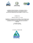 CONSEJO NACIONAL DE CIENCIA Y TECNOLOGIA -CONCYTSECRETARIA NACIONAL DE CIENCIA Y TECNOLOGIA -SENACYTFONDO NACIONAL DE CIENCIA Y TECNOLOGIA -FONACYTINSTITUTO DE NUTRICIÓN DE CENTRO AMÉRICA Y PANAMA –INCAP- INFORME FINAL PROYECTO FODECYT No. 26 - 2006. Rendimiento y uso potencial de Paraíso Blanco, Moringa oleifera Lam en la Producción de alimentos de alto valor nutritivo para su utilización en comunidades de alta vulnerabilidad alimentario-nutricional de Guatemala. Investigadora Principal MSc. Norma Carolina Alfaro GUATEMALA, ENERO DE 2008. AGRADECIMIENTOS: La realización de este trabajo, ha sido posible gracias al apoyo financiero dentro del Fondo Nacional de Ciencia y Tecnología – FONACYT-, otorgado por La Secretaría Nacional de Ciencia y Tecnología – SENACYT- y al Consejo Nacional de Ciencia y Tecnología –CONCYT-. ii RESUMEN En el presente proyecto se determinaron las condiciones agroecológicas que requiere la planta de Moringa oleifera Lam, su rendimiento en materia verde y su uso posterior como materia prima para la elaboración de alimentos de alto valor nutricional, en cuatro municipios de alta vulnerabilidad alimentario-nutricional. Las localidades presentan diferentes condiciones edafo-climáticas y se ubican en los municipios de San Juan Sacatepéquez, Patulul, Suchitepéquez, Parcelamiento La Máquina, Suchitepéquez y Aldea El Ingeniero, Chiquimula. Las condiciones del Parcelamiento La Máquina y la Aldea El Ingeniero, favorecieron el crecimiento y producción de materia verde de la planta. Este estudio se realizó debido a la situación de la problemática alimentaria y nutricional que sufren poblaciones pobres del país. En Guatemala, la situación de pobreza, la baja disponibilidad de alimentos y el deficiente acceso a servicios de salud y educación, limitan la capacidad de las familias de acceder a alimentos que les permitan satisfacer sus necesidades nutricionales, lo cual se refleja en los niveles de desnutrición y deficiencias de micronutrientes que afectan principalmente a los niños, niñas y mujeres en edad fértil. (SEGEPLAN, 2001) Por otro lado, estudios realzados por INCAP, muestran que los grupos más vulnerables de la población son los niños y niñas menores de 5 años, las mujeres en edad fértil especialmente las que se encuentran en condición de embarazo y lactancia y se destaca en dichas investigaciones la importancia de atender las deficiencias tanto de macro como de micronutrientes de la población en general y en especial de los grupos de mayor vulnerabilidad, señalados anteriormente. Para proponer alternativas de solución a la problemática planteada, el INCAP ha desarrollado una línea de alimentos nutricionalmente mejorados, tomando como base cereales y leguminosas o alimentos de uso tradicional o autóctono, por lo que con información existente sobre las potencialidades nutricionales de la planta Moringa oleifera Lam y su cultivo en Guatemala, se planteó el desarrollo de la presente investigación para determinar, el uso potencial de la planta mencionada como materia prima para la elaboración de alimentos nutricionalmente mejorados o partes comestibles que puedan ser utilizados como fuente de macro y micro nutrientes. Para ese propósito, primero, se procedió a identificar algunas características agronómicas del cultivo. Para conocer sus características nutricionales, se realizaron análisis físicoquímicos y nutricionales de hojas y frutos de Moringa oleifera Lam para determinar sus contenidos de macro y micronutrientes con atención en energía, proteína, fibra, vitaminas A y C, hierro y potasio. En su composición nutricional, la planta también presenta hasta un 30% de proteína en materia seca, alto contenido de carotenos y energía. En hojas existe mayor presencia de nutrientes que en vainas. Entre frutos verdes y maduros, los primeros presentan mejor proporción de nutrientes respecto a las vainas maduras. Respecto a las hojas tiernas –ápices terminales- y hojas de las partes medias de las ramas, se encontraron mejores contenidos nutricionales en las hojas de las partes medias de las ramas. iii En cuanto a la evaluación de la biodigestibilidad de la proteína de Moringa oleifera Lam y la biodisponibilidad de sus nutrientes para el ser humano, se realizaron pruebas utilizando animales de experimentación, a los que se les administró dietas de maíz y arroz a las que se adicionó harina de hojas deshidratadas crudas y cocidas, estableciendo que la adición de 5.6% y 3.75 para las dietas de maíz y arroz, respectivamente, favorecen la biodisponibilidad de la proteína (PER). Con base a las preparaciones consumidas tradicionalmente en el país, por medio de pruebas de análisis sensorial se evaluó la aceptabilidad de preparaciones de sopa, frijol, tamalito y otras preparaciones familiares en un grupo de población adulta del área urbana y rural y un grupo de niños del área rural. A las preparaciones se les adicionó harina de hojas deshidratadas en los niveles mejor evaluados en el estudio experimental y hojas frescas. Los resultados de la evaluación sensorial, indicaron que la preparación de hojas deshidratadas preparadas como materia prima en la elaboración de tamalito obtuvo la mejor aceptación en ambos grupos y en particular, la tortilla y la sopa de arroz en niños. Con base a los resultados obtenidos sobre las características agronómicas, contenido de nutrientes y aplicación en diversos usos, se recomienda promover la producción, plantación y aplicaciones de la planta Moringa oleifera Lam y el desarrollo de tecnología alimentaria para el aprovechamiento de sus componentes nutricionales en la complementación o suplementación de dietas alimenticias deficientes en energía, proteína, vitamina A y hierro, además de otros nutrientes que se encuentran en menor cantidad. iv PARTICIPANTES EN EL PROYECTO El desarrollo del Proyecto Rendimiento y uso potencial de Paraíso Blanco, Moringa oleifera