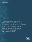 RESUMEN DE LA SOLUCIÓN CA SERVICE MANAGEMENT - GESTIÓN DE ACTIVOS DE SOFTWARE ¿Cómo puedo gestionar mejor mis activos de software y reducir los riesgos que conllevan las auditorías de conformidad? CA Service Management le ayuda a saber qué activos de software se utilizan, a agrupar y distribuir software que no se esté utilizando para aplicarlo allí donde sea necesario, y a reducir los riesgos que comportan las auditorías de los distribuidores de software. 3 | Resumen de la solución: CA SERVICE MANAGEMENT - GESTIÓN DE ACTIVOS DE SOFTWARE ca.com/es Resumen ejecutivo Reto En un entorno donde se requiere que los departamentos de TI hagan más por menos, se hace preciso gestionar el software con eficacia para garantizar que el dinero se invierte en TI de la mejor manera. Lamentablemente, la mayoría de las organizaciones no gestionan dichas inversiones con eficacia. Suelen recurrir a hojas de cálculo o bases de datos que ellas mismas elaboran para hacer un seguimiento del uso y el aprovechamiento de las licencias de software. Tienen dificultades para saber qué licencias de software se están empleando y cuáles quedan libres y disponibles. La organización acaba por adquirir software que realmente no necesita y no consigue mantener bajo control la conformidad con las condiciones de uso de las licencias. Como resultado, incurre en elevados gastos generales correspondientes al software y la empresa se expone a un riesgo significativo, derivado de posibles infracciones que se detecten durante las auditorías que examinan la conformidad con las condiciones. Oportunidad Las capacidades de gestión de activos de CA Service Management proporcionan una solución líder del mercado, diseñada para ayudarle a mejorar la gestión financiera, contractual y operativa de los activos de TI (hardware y software) a lo largo de su ciclo de vida. Se han diseñado expresamente para abordar las necesidades de los proveedores de servicios y las grandes empresas como parte de una completa solución de gestión de servicios. La solución permite gestionar de manera integral los activos en los que se fundamentan los servicios de TI, desde la solicitud hasta la retirada, y ofrece visibilidad y control financieros sobre dichas inversiones. Ventajas Una solución completa de gestión de ciclos de vida de activos ofrece un retorno de la inversión demostrado para controlar el gasto en TI, permitir la conformidad con la normativa y las políticas y mejorar la prestación de servicios. Las capacidades de gestión de activos de CA Service Management le permiten saber mejor qué activos se encuentran en uso y cuáles están disponibles. Se encuentra en mejor posición para reasignar licencias de software donde se requieran y retirar activos que ya no aportan valor al negocio. Como resultado, se reducen los gastos derivados de adquisiciones innecesarias y los costes generales de TI. Además, las capacidades de elaboración de informes mejoran enormemente las negociaciones con los distribuidores, la gestión de la conformidad con las condiciones del software y la reacción ante las auditorías. A su vez, esto reduce los costes derivados de los distribuidores y los riesgos que suponen las auditorías de software. 4 | Resumen de la solución: CA SERVICE MANAGEMENT - GESTIÓN DE ACTIVOS DE SOFTWARE ca.com/es Sección 1: Reto ¿Innovar y avanzar o limitarse a sobrevivir con lo puesto? Actualmente, las organizaciones viven inmersas en un clima económico muy delicado, donde luchan por mantener su ventaja competitiva. A menudo, los directores financieros y de TI se encuentran con que estas dos directivas entran en conflicto. Sin embargo, los directores de TI y sus departamentos no solo tienen que prestar apoyo a la innovación para responder a las necesidades de una base de clientes cada vez más diversa; por lo general, además deben trabajar con un presupuesto bastante más ajustado que el de hace diez años. Al mismo tiempo, el entorno de TI se ha vuelto cada vez más complejo, con una gran implantación de la virtualización, nuevas plataformas e infraestructuras basadas en la nube, así como un amplio catálogo de dispositivos a los que hay que brindar compatibilidad. Esta complejidad obliga a distribuir aún mejor los recursos, ya bastante espartanos, dificultando la tarea de centrarse en la innovación. Para abordar esta dinámica, es preciso que los ejecutivos gestionen de forma proactiva las inversiones que ya han destinado a activos de software para asegurarse de lograr el máximo rendimiento. Además, uno de los aspectos principales de la gestión de los activos consiste en cumplir las condiciones de las licencias de software. Cada vez es más frecuente que los distribuidores ejerzan su derecho a auditar a los clientes con el fin de comprobar que no se sobrepasan los límites autorizados de la licencia al utilizar el software adquirido. Por tanto, las organizaciones se ven expuestas al riesgo de recibir multas por inconformidad con las condiciones acordadas, al tener que asumir los gastos que conlleva la realización de estas auditorías y a que el desarrollo normal de su negocio se vea perjudicado cuando tienen que reaccionar ante estas situaciones. Lamentablemente, la mayoría de las organizaciones no gestionan de forma adecuada las inversiones en software. Con el fin de hacer un seguimiento de las licencias de software y los activos físicos, recurren a procesos puramente manuales, a hojas de cálculo o a bases de datos de elaboración propia. Como resultado, no saben con certeza dónde se aplican y aprovechan estos activos o cuáles han caído en desuso, y desconocen si la aplicación práctica del software cumple con las licencias existentes. En lugar de optimizar la inversión, se restan inversiones a los proyectos innovadores debido al gasto en compras de activos físicos y de software, que en realidad no serían necesarios. La organización se expone a multas por inconformidad con los acuerdos del sof