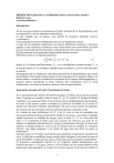 PRIMER PRINCIPIO DE LA TERMODINÁMICA (SEGUNDA PARTE) Roberto Laura (versión preliminar) Introducción. En las secciones anteriores presentamos el primer principio de la termodinámica, para un sistema físico con las siguientes características: a) está formado por un número muy grande de pequeñas partículas masivas (¿moléculas?) b) las partículas se mueven obedeciendo las leyes de la mecánica clásica. c) cada par de partículas interacciona con fuerzas débilmente atractivas a distancias grandes, y muy repulsivas a distancias cortas. Estas fuerzas son conservativas, de modo que hay una energía potencial asociada a cada interacción entre pares de partículas. d) sobre cada una de las partículas actúan también fuerzas externas. Obtuvimos entonces la siguiente expresión: ⎛1 2 ⎞ (1) Δ⎜ MVCM ⎟ + ΔU = W + Q , ⎝2 ⎠ donde M es la masa total del sistema, VCM es la velocidad de su centro de masa, U es la energía interna, W es el trabajo realizado sobre el sistema, y Q es el calor que entra al sistema. Destaquemos que la “deducción” del primer principio de la termodinámica que hemos desarrollado se ha basado exclusivamente en los conceptos de la mecánica clásica. No hemos tenido en cuenta en la deducción la presencia de los campos electromagnéticos, y tampoco hemos considerado la teoría cuántica, hoy considerada como la teoría fundamental, y de la que la mecánica clásica es solo una aproximación. Equivalente mecánico del calor. Experimento de Joule. En la presentación que hicimos del primer principio, el trabajo de las fuerzas externas sobre el sistema se consideró como la suma W + Q . El símbolo W designa al trabajo “ordenado” que puede escribirse como una fuerza por un desplazamiento macroscópico, tal como el que aparece cuando se desplaza un pistón en el cilindro de un motor. El símbolo Q representa al trabajo “desordenado”, tal como el que realizan las moléculas del metal de una pava al fuego sobre las moléculas del agua contenida en ella. Es evidente de estas definiciones de W y de Q , que se trata de cantidades que representan distintas formas de transferirle energía a un sistema, y que ambas cantidades pueden expresarse en unidades de energía, como el Joule ( J = N ⋅ m ). Pero antes del siglo ¿? se consideraba al calor como una sustancia (el calórico), que fluía de los cuerpos a temperatura elevada hacia los cuerpos a temperatura más baja. El calor tenía entonces su propia unidad, la caloría, que se definía como la cantidad de “sustancia calórico” que debía entregarse a un gramo de agua para que eleve un grado su temperatura. Fue Joule quien en ?? realizó experimentos para determinar el equivalente mecánico del calor, es decir para contabilizar cuanta energía debía entregarse a un gramo de agua de modo de producir el efecto de una caloría, es decir para elevar un grado su temperatura. El dispositivo experimental consiste en un recipiente aislado térmicamente, que contiene una masa m de agua. Como se ve en la figura, un eje vertical giratorio tiene paletas que están sumergidas en el agua. En su parte superior, el eje tiene un tambor en 1 el que está arrollada una cuerda. Esta cuerda, después de pasar por una polea, tiene atada en su otro extremo un bloque de masa M , sujeta a una altura H sobre el piso. Cuando se suelta el bloque, este desciende la altura H , haciendo girar las paletas dentro del agua. En este giro, las paletas hacen sobre el agua un trabajo W = MgH . Como las paredes del recipiente son buenos aislantes térmicos, podemos considerar que no ingresa calor al recipiente en el proceso ( Q = 0 ). Además, durante el proceso el centro de masa del agua no cambia de lugar. Teniendo todo esto en cuenta podemos usar la ecuación (1) para obtener la siguiente expresión para la variación de energía interna del agua ΔU = MgH En este proceso de entrega de trabajo al agua, esta experimenta un aumento de temperatura ΔT , que se puede medir en el termómetro que está sumergido en el agua. Como por definición, una caloría es la cantidad de calor para que un gramo de agua aumente un grado su temperatura, esta variación de energía interna se puede escribir también en la forma 1cal ΔU = ⋅ m ⋅ ΔT gr⋅º C Igualando las dos expresiones para la variación de energía interna obtenemos 1cal ⋅ m ⋅ ΔT = MgH . gr⋅º C De aquí deducimos que M ⋅H m 1cal = ⋅ 9,8 2 ⋅10 −3 kg ⋅º C m ⋅ ΔT s Las cantidades m , M , H y ΔT se pueden medir en el experimento, y se obtiene entonces 1cal = 4,18 J , (2) que es la expresión de la caloría en Joules, la unidad de energía del sistema internacional. Trabajo sobre un fluido. 2 Consideremos un fluido (líquido o gas), dentro de un recipiente como el que indica la figura. Se trata de un cilindro de paredes rígidas con un émbolo móvil. Supongamos que con una fuerza externa representada por el vector Fext , y aplicada sobre el émbolo, se produce un pequeño desplazamiento del mismo, representado por el vector Δl . El pequeño trabajo realizado sobre el fluido resulta entonces ΔW = F ext ⋅ Δl =| F ext | ⋅ | Δl | . Si con A designamos al área del émbolo en contacto con el fluido, podemos escribir | F ext | ΔW = ⋅ A | Δl |= − pext ⋅ ΔV . (1) A En la expresión anterior pext es la presión exterior, es decir la fuerza por unidad de área que el émbolo hace sobre el fluido, y ΔV es la variación del volumen ocupado por el fluido, cuando el émbolo se desplaza como indica la figura. El signo negativo corresponde ponerlo para que el trabajo externo resulte positivo cuando el volumen disminuye ( ΔW > 0 si ΔV < 0 ). Si la fuerza externa va cambiando a medida que se modifica el volumen ocupado por el fluido, podemos considerar ese proceso como una sucesión de pequeños cambios de volumen en que el trabajo se escribirá como en la ecuación (1). El trabajo total en el proceso será la suma de estos trabajos pequeños. Si se co