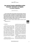Las nuevas fuentes estadísticas sobre inversión extranjera en España Un análisis comparativo MARTA MUÑOZ GUARASA* Ante la necesidad de adaptar nuestra normativa en materia de inversiones extranjeras al Tratado de la Unión Europea se ha publicado el Real Decreto (RD) 664/1999, de 23 de abril. Este hecho ha dado lugar a una modificación en las estadísticas disponibles de inversión directa extranjera en España, de forma que se han sustituido las basadas en los proyectos de verificación/autorización por las procedentes de las declaraciones al Registro de Inversiones Exteriores, lo cual ha supuesto una ruptura en la serie de inversión directa extranjera en España. El objeto de este trabajo es realizar un análisis de las característias de ambos tipos de información con el fin de facilitar la interpretación de los datos. Palabras clave: inversiones extranjeras, estadísticas, legislación, movimiento de capital, España. Clasificación JEL: F21. COLABORACIONES 1. Introducción La Dirección General de Política Comercial e Inversiones Exteriores ha sido —junto al Banco de España— la encargada de elaborar las estadísticas sobre inversión directa extranjera en nuestro país, las cuales se han visto modificadas con los cambios en la legislación en esta materia. La inversión extranjera en España estaba regulada por el RD 671/1992, de 2 de julio, que establecía un régimen general de libertad para la misma, con algunas excepciones. Como señalaba Herran Mendívil, J. de la (1994; página 79) «Asimilar el concepto de régimen liberalizado a total ausencia de seguimiento administrativo sería una interpretación incorrecta». Así, la liberalización de las inversiones extranjeras es compatible con * Departamento de Economía Aplicada. La autora agradece a doña Carmen Norman Barrón, de la Dirección General de Política General e Inversiones Exteriores, sus comentarios y sugerencias a este trabajo. su seguimiento por parte de las autoridades económicas. En este sentido, el artículo 4.° de la Directiva 88/361/CE, de 24 de junio, no prejuzgaba el derecho de los países miembros a adoptar las medidas indispensables para impedir las infracciones a sus leyes y reglamentos, en particular, en materia fiscal o de control prudencial de las entidades financieras y a establecer procedimientos de declaración de los movimientos de capitales que tuvieran como objeto la información administrativa o estadística. Haciendo uso del derecho anterior, la normativa española contemplaba algunas formas de control administrativo tales como la declaración, la verificación previa y la autorización. Para adaptarse al Tratado de la Unión Europea y continuar avanzando en la libertad de movimientos de capitales se ha publicado el RD 664/1999, de 23 de abril, sobre inversiones exteriores, que ha derogado el anterior. El artículo 73B del Tratado no sólo prohíbe las restricciones BOLETIN ECONOMICO DE ICE N° 2646 DEL 13 AL 19 DE MARZO DE 2000 25 COLABORACIONES a los movimientos de capitales y a los pagos entre Estados miembros, sino también entre estos y terceros países. Pero a la vez, reconoce la facultad de los Estados miembros para establecer o mantener requisitos administrativos sobre las operaciones liberalizadas con fines estadísticos o económicos y para poder adoptar medidas por razones de orden público y seguridad pública. Como consecuencia del nacimiento de esta nueva normativa ha desaparecido la obligatoriedad de los trámites de verificación y autorización previa (1), manteniéndose únicamente la declaración con posterioridad a la realización de las operaciones (2) y, por tanto, se han visto modificadas las estadísticas sobre inversiones extranjeras en España. En este contexto, ante las perspectivas que se presentaban, y en la medida en que el Registro ofreció las garantías suficientes para ser utilizado como fuente de información, en 1998 la Dirección General de Política Comercial e Inversiones Exteriores dejó de elaborar las estadísticas de inversiones extranjeras basadas en los expedientes de verificación y autorización y comenzó a publicar las procedentes de las declaraciones al Registro de Inversiones Exteriores desde el año 1996 (3). La difusión de esta nueva información supone, sin duda, un gran avance y una inestimable ayuda, en especial para los analistas de la economía, puesto que las cifras se acercan más a la realidad. Sin embargo, hay que tener en cuenta, que este hecho ha supuesto una ruptura en la serie de inversión directa extranjera en España en el año 1997, puesto que no son comparables ambos tipos de datos. El objetivo de este artículo es mostrar las distintas características de estas dos fuentes estadís(1) Con algunas excepciones; por ejemplo, las inversiones extranjeras en España en empresas dedicadas a actividades relacionadas con la Defensa Nacional deberán obtener la previa autorización o también las inversiones, que realicen en España los Estados no miembros de la Unión Europea para la adquisición de bienes inmuebles destinados a sus Representaciones Diplomáticos o Consulares, salvo que exista un Acuerdo para liberalizarlas en régimen de reciprocidad. (2) Excepto para algunos tipos de operaciones procedentes de los paraísos fiscales, que además de esta declaración debe efectuarse otra previa a la realización de la inversión. (3) Véase Boletín de Información Comercial Española (1998): «Estadísticas sobre flujos de inversiones exteriores», Boletín de Información Comercial Española, número 2579, páginas 29-30. 26 ticas con el fin de facilitar la interpretación de las cifras durante estos últimos años. Para ello, tras esta introducción, en el epígrafe segundo se tratarán los principales aspectos de las estadísticas de inversión directa extranjera elaboradas a partir de los proyectos de verificación y autorización, en el siguiente se mostrarán estos mismos para las basadas en el Registro d