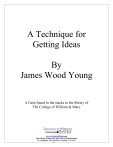 A Technique for Getting Ideas By James Wood Young A Gem found in the stacks in the library of The College of William & Mary www.AdvancedHiring.com Sales Hiring Systems for Sales Driven Organizations US Telephone 703-229-4224 ● Norfolk, VA 23517 -1- A note from Alan Fendrich, Advanced Hiring System February 8, 2010 Dear Reader, Generating good ideas is required of every sales manager, so it is with pleasure we post this copy of A Technique for Getting Ideas. I remember first hearing about this book by James Wood Young at a marketing course in the mid-1990’s. The presenter called it “the one book everyone needs to read to consistently produce good ideas.” But, he added, the book is out of print and impossible to find. In 2001, I got a gig teaching a marketing course in the School of Business at The College of William & Mary. That’s another story about how I got the job and what it lead to, but as a faculty member I was given access to stacks in the library reserved for faculty. Sales types are (or should be) voracious readers, as this book will point out. Anyway, I was perusing the stack and there it was. I hope you’ll find this to be an amazing gem, as I have for years. I’ve read it dozens of times and whenever I get stuck I go back for another “dose.” Good luck, Alan Fendrich P.S. I apologize in advance if you find typos. OCR technology back then was not very sophisticated. I’ve gone through it a number of times to correct the glaring ones. www.AdvancedHiring.com Sales Hiring Systems for Sales Driven Organizations US Telephone 703-229-4224 ● Norfolk, VA 23517 -2- TABLE OF CONTENTS PREFATORY NOTE __________________________________________________________ 4 HOW IT STARTED ___________________________________________________________ 5 THE PARETO THEORY ______________________________________________________ 7 TRAINING THE MIND _______________________________________________________ 9 COMBINING OLD ELEMENTS _______________________________________________ 10 IDEAS ARE NEW COMBINATIONS ___________________________________________ 12 THE MENTAL DIGESTIVE PROCESS _________________________________________ 15 “CONSTANTLY THINKING ABOUT IT” _______________________________________ 17 THE FINAL STAGE _________________________________________________________ 18 SOME AFTER-THOUGHTS __________________________________________________ 19 www.AdvancedHiring.com Sales Hiring Systems for Sales Driven Organizations US Telephone 703-229-4224 ● Norfolk, VA 23517 -3- PREFATORY NOTE THESE THOUGHTS were first presented to graduate students in advertising of the School of Business at the University of Chicago, and later before several gatherings of active advertising practitioners. This accounts for the informal tone. The subject is properly one which belongs to the professional psychologist, which I am not. This treatment of it, therefore, can have value only as an expression of the personal experience of one who has had to earn his living by producing what-were alleged to be ideas. It was first prepared one Sunday afternoon when I had to consider what I should say to a Monday class. No literature on the subject was at the moment available, nor had I any recollection n of having seen any. Since then I have discovered that Graham Wallas in his Art of Thought has a chapter on this process of the creative thinker. In it he arrives at, somewhat the same conclusions as here given. But as Prof. Wallas' book is now reported out of print, and as what follows has seemed to have a particular usefulness for workers in advertising, I am emboldened to publish it. James Webb Young www.AdvancedHiring.com Sales Hiring Systems for Sales Driven Organizations US Telephone 703-229-4224 ● Norfolk, VA 23517 -4- HOW IT STARTED ONE DAY in my last year as an advertising agency executive in Chicago I had a telephone call from the western advertising manager of a well-known magazine. He asked if he could see me immediately on a matter of importance. Shortly thereafter he arrived in my office, somewhat out of breath. "We are having a meeting today," he said, "of our entire western sales staff. Its purpose is to discuss how we can improve our selling. "In our discussions we have tried to analyze the selling methods of other successful publications and salesmen. And among these we have been particularly impressed by the success of Mr.X in his selling of the Weekly.” "After studying just how he is so successful we have come to the conclusion that it all rests on just one thing: he doesn't sell space: he sells Ideas.” "And so," he continued, with enthusiasm, "we have decided that that is just what we are going to do. From here on. We are not going to sell space at all. Beginning tomorrow morning every single one of us is going to sell Ideas!" I said I thought that was just dandy, but wondered what it was that he wanted to discuss with me. `Well," he said; somewhat ruefully "we could see that what we ought to do is to sell ideas, all right. But that is where we sort of got stuck. "What we are not clear about is just how to get ideas. "So I said maybe you could tell us, and that is what I am here for. "You have produced a lot of advertising ideas. Just how do you get them? The boys are waiting for me to come back and tell them." Now I know that if I had not been so flattered by this question, and if my questioner had not been so obviously serious in asking it, I would have had a hearty fit of laughing at this point. I thought at the time that I had never heard a funnier or more naive question. And I was completely unable to give any helpful answer to it. But it struck me afterward that maybe the question "How do you get ideas?" wasn't as silly as it sound. Maybe there was some answer to it. And I thought about it; www.AdvancedHiring.com Sales Hiring Systems for Sales Driven Organizations US Telephone 703-229-4224 ● Norfolk, VA 23517 -5- An idea, I thought, has some of that mysterious quality which romance lends to 