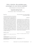 Arte y ciencia: dos senderos que convergen en una misma realidad1 Héctor Bonilla-Estevez2 & Luis Fernando Molina-Prieto3 Centro de Estudios y Análisis Económicos-CEAE. Universidad Antonio Nariño, Bogotá, Colombia. Fecha de recepción: 16/08/2011. Fecha de aceptación: 15/11/2011. Resumen El artículo analiza el papel del arte como generador de conocimiento, algo que desde la ciencia, por lo general, se ha rechazado. Los autores cosechan argumentos surgidos desde la semiología y la pedagogía (Schwarcz), la sociología del arte (Hauser) y la filosofía (Gadamer) para evidenciar que el arte es un camino de conocimiento único, que trasciende los límites que circundan a la ciencia; que es un sedimento de la experiencia y la vivencia; que surge de contextos culturales, económicos, históricos y sociales; y que desempeña actualmente un importante rol social, y por tanto, está estrechamente relacionado con la realidad, de la cual surge. Señalan que tanto la ciencia como el arte recurren para sus procedimientos operativos y comunicacionales al lenguaje, que no es otra cosa que una forma de arte, compuesta por signos que representan lo ausente, y que tienen la capacidad de traer al presente, tanto el pasado como el futuro. Se concluye que el arte está sólidamente implantado en la realidad, por lo que como fenómeno totalizador, ligado a la realidad humana y social, capta y representa a la sociedad y a la cultura en sus múltiples manifestaciones. Art and science: two roads leading to the same reality Abstract The article analyzes the role of art as a knowledge generator, a possibility often denied by scientists. From the point of view of semiotics and pedagogy (Schwarcz), the sociology of art (Hauser) and philosophy (Gadamer), the authors argue that art is a unique pathway to knowledge transcending the limits of science; that it is a deposit of living experiences; that it is a product of the particular historic, economic and cultural contexts; and that it currently plays a critical social role, all of which indicate how deeply it is connected to the reality giving birth to it. They also pinpoint that both art and science turn to language for their operative and communicational procedures, a strategy that is in itself a form of art composed by signs representing the absent, signs with the ability to bring the past and the future to the present. As a conclusion, the authors state that art is solidly melted into reality, which, as a totalizing phenomena linked to the social and human milieu represents society and culture in all their various manifestations. Keywords Palabras clave Sociología del arte, icono, lenguaje, representación, arte y ciencia. Sociology of art, icon, language, representation, art and science. Artículo producto de la investigación “Economía Creativa” financiada por la Universidad Antonio Nariño. 1 Licenciado en Matemáticas y Física, Universidad de La Salle. M.Sc en Educación, Universidad Autónoma de Barcelona. M.Sc en Filosofía, Universidad del Valle. Doctor (c) en Filosofía, Universidad Autónoma de Barcelona. [email protected] 2 Bonilla-Estevez, H.& Molina-Prieto, L.F. Arquitecto Universidad Nacional de Colombia. [email protected] 3 Revista nodo Nº 11, Vol. 6, Año 6: 39-54 ! Julio-Diciembre 2011 ! 39 Foto: © Diana Beltrán. http://www.dianabeltran.com/ Introducción Actualmente el reconocimiento de las artes y las actividades artísticas es objeto de controversia, por tanto, es necesario reflexionar sobre las características específicas del arte como conocimiento, y especialmente como generador de nuevo conocimiento, algo que por lo general ha sido puesto en duda. Se ha intentado interpretarlo a partir de su aplicación en otros campos disciplinares. En el campo de la pedagogía, por ejemplo, se ha procurado hacer del arte el conocimiento que aporta a la formación de las personas aspectos complementarios de la subjetividad, como la sensibilidad, las emociones o la expresividad; y de igual manera se recurre al arte como instrumento pedagógico básico para la formación moral, ética o de comportamiento en comunidad. Muchas son las especulaciones y las ideas que circulan alrededor del tema, y es necesario reflexionar sobre ellas, “puesto que remiten a las representaciones sociales que construyen los sujetos en interacción, en torno a ese objeto social llamado arte” (Schwarcz, 2006: 31). Se suele dar por sentada su naturaleza y tan sólo se pone a discusión su valoración social, sobre la que necesariamente se requiere tener claridad, pues de la relevancia otorgada dependerán los significados atribuidos. Arte en contexto El arte es una construcción subjetiva y significante por ser producto de la acción humana. Cuando al analizar una obra de arte se pretende comprenderla o interpretarla, lo que se pone en juego son sus significados. Sin embargo, sólo es posible conocer o descubrir partiendo de lo conocido. En tanto que el objeto puede ser asociado o articulado 40 Arte y ciencia: dos senderos que convergen en una misma realidad con la propia realidad en la vida cotidiana, al objeto se le puede atribuir sentido, es decir, el objeto adquiere significado únicamente a partir de lo conocido. Al interpretar el sentido de una obra de arte lo que se realiza es una operación con significados, sean estos valorativos o no. Así, se le atribuye una identidad. Esta capacidad de construcción de sentido sólo es posible entre sujetos, y se caracteriza por el uso de la herramienta fundamental de producción de universo simbólico,4 el lenguaje. El lenguaje es un mediador entre sujetos constituyéndose en un mundo donde el otro aporta palabra, presta sentido y brinda significados que históricamente han sido consensuados y continúan construyéndose y consensuándose en el proceso dialéctico de la interacción. El arte es un tipo de expresión humana que se realiza a partir de materiales específicos para darles sentido. Para ser codificado como t